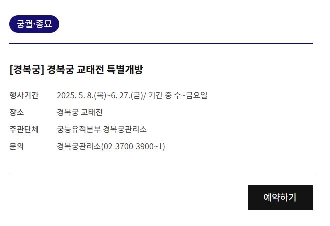 - 관람료: 교태전 특별관람은 무료, 경복궁 입장료 별도