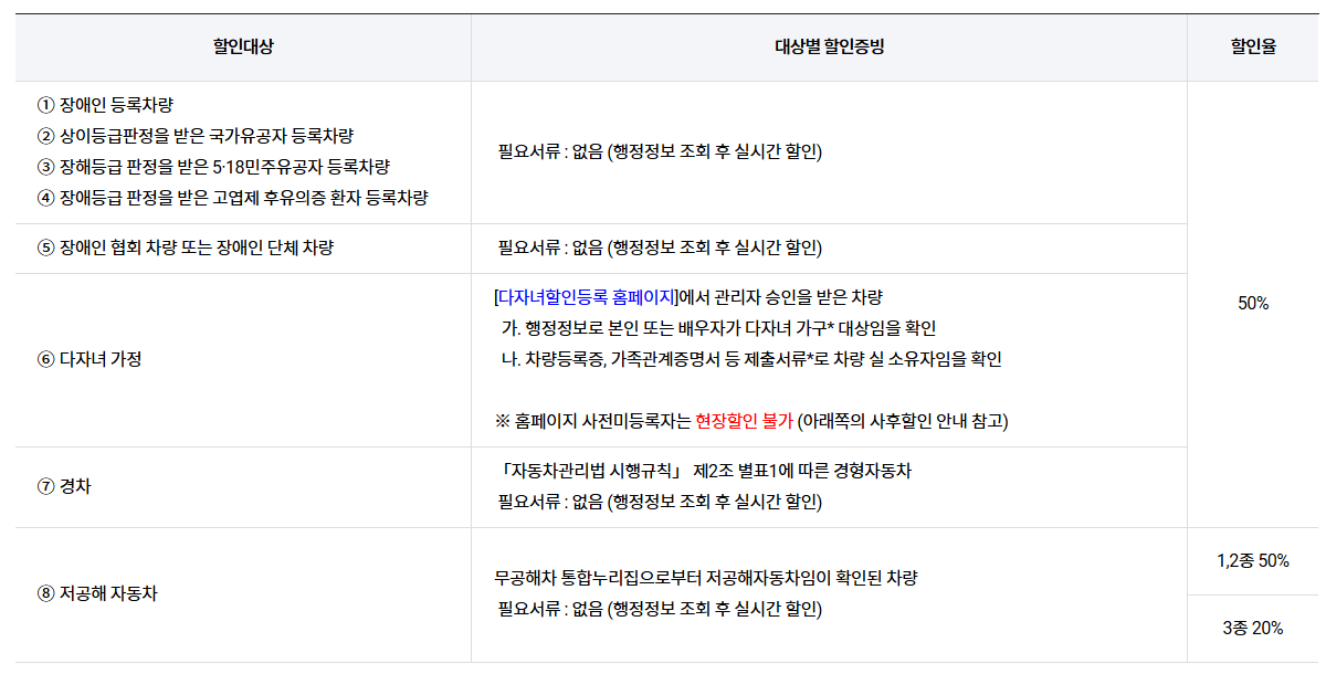 할인율 : 50% (저공해 3종 20%)