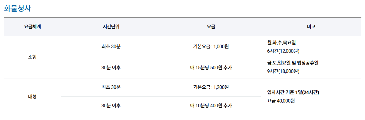 이용객 여러분께서는 이용하시기 편리한 주차장을 이용하시고, 각 청사 주차장 별로 요금체계가 상이하오니 이점 유념하여 이용하시기 바랍니다.