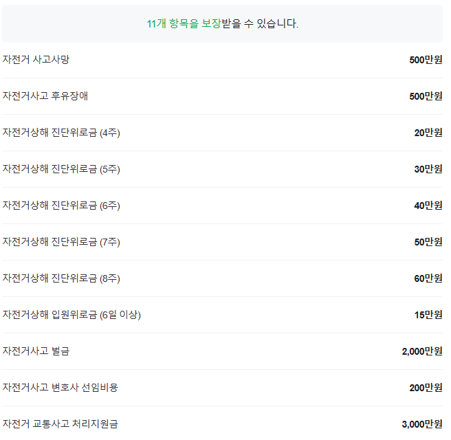 대구 자전거 안심보험 보장항목