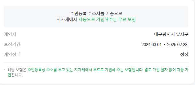 주민등록 주소지를 기준으로 지자체에서 자동으로 가입해주는 무료보험