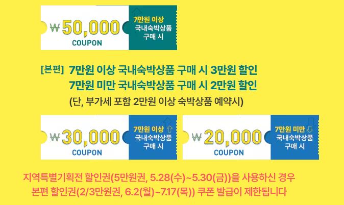- 조건: 7만 원 이상 숙박상품 예약 시