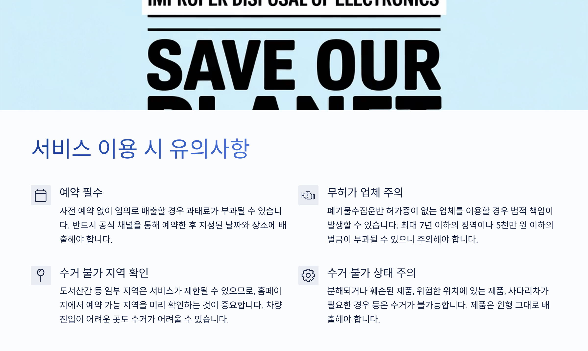 - 수거 불가 지역 및 품목: 예약 전 반드시 확인