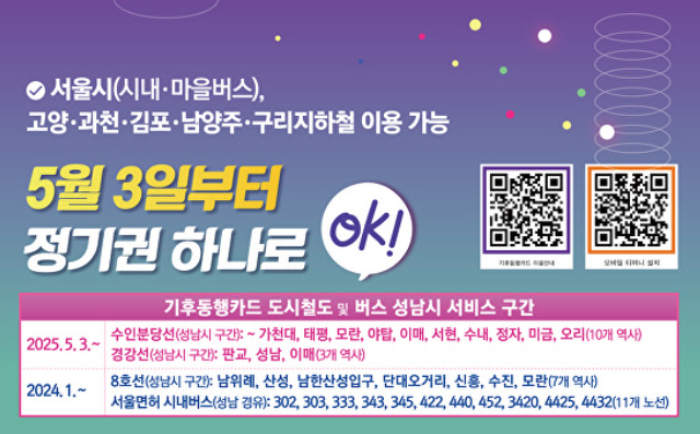| 대상 지역 | 성남(수인분당선·경강선), 서울, 기타 협약 도시 |