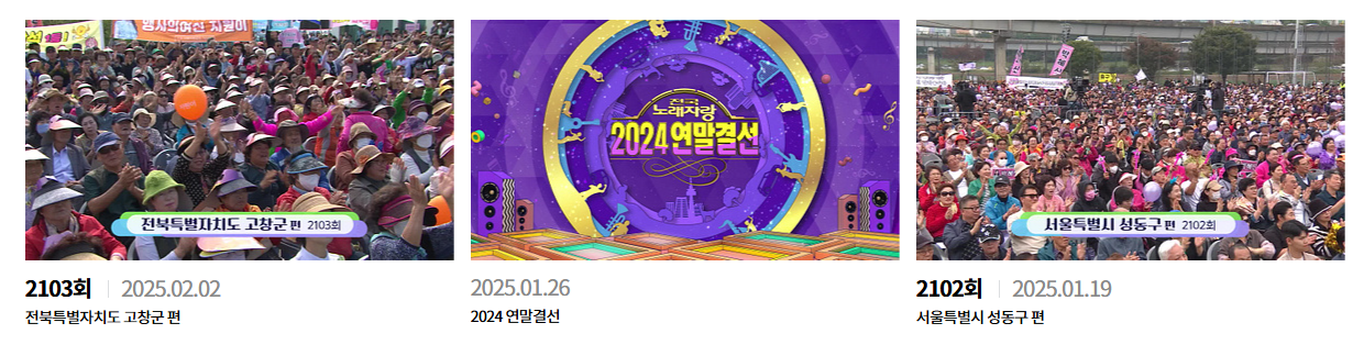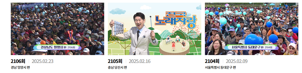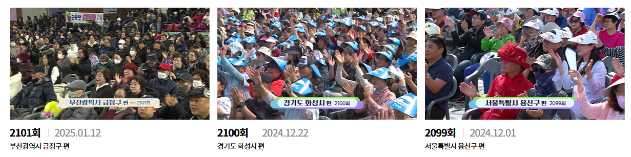 전국노래자랑 2025년 4월 녹화 방송 일정, 전국노래자랑 다시보기