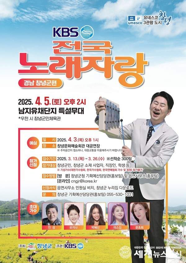 - 예심일시: 2025년 4월 3일(목) 오후 1시 , 창녕문화예술회관 대공연장