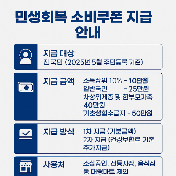 이번 민생회복 소비쿠폰 사업은 코로나19 이후 경기 둔화 및 고물가 상황에 대응하기 위한 핵심 민생 정책으로, 소득별·지역별로 지원액을 차등화해 정책 수혜의 형평성을 높이려는 시도로 평가됩니다.