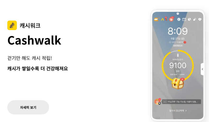 1. 캐시워크 – 걸으면서 돈 버는 대표 만보기 앱