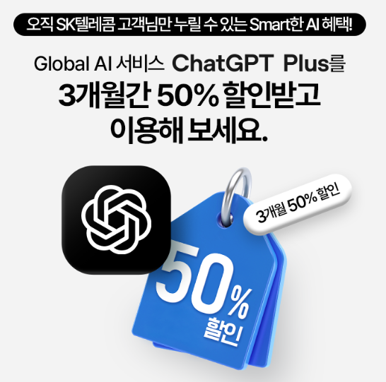 - 할인 대상: 챗GPT 플러스를 처음 이용하는 SK텔레콤 가입자