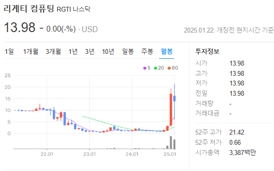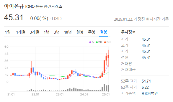- 아이온큐(+16.51%), 리게티컴퓨팅(+42.22%), 디웨이브퀀텀(+19.35%).