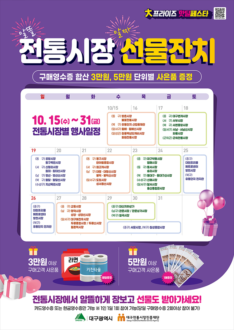 🎉 10월 15~31일, 대구 전통시장 77곳서 특별 사은행사 진행