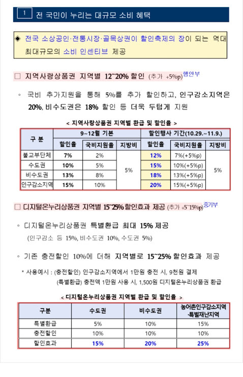 | 지역사랑상품권 | 10.29~11.9 | 국비 5% 추가지원 | 최대 20% |