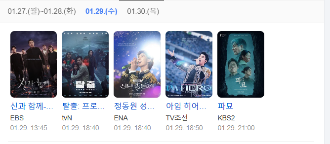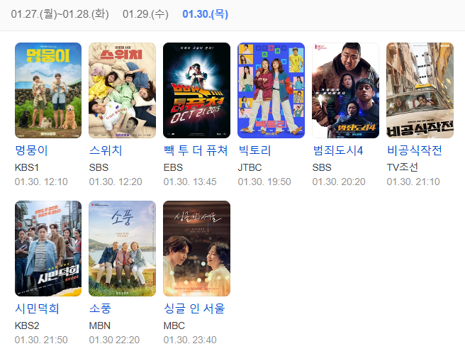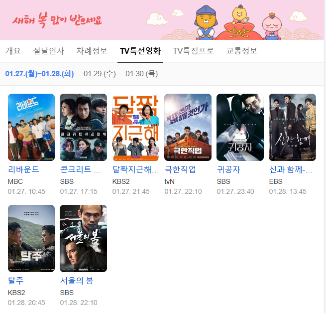2025년 설연휴 영화 편성표를 정리해보았습니다.