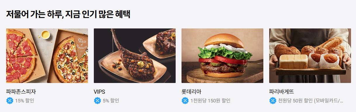 - 스타벅스, 파리바게뜨, 도미노피자 등 제휴처